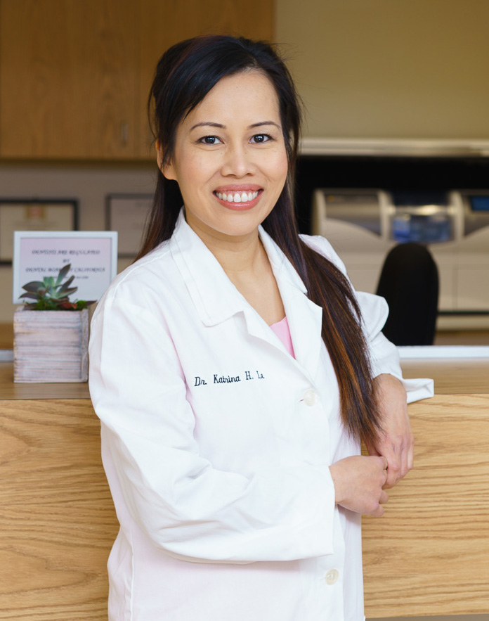 Katrina Le, D.D.S. received her Doctorate of Dental Surgery degree from the University of the Pacific Dental School. She is an active member of the ADA, CDA. and the Mid-Peninsula Dental Society. She enjoys interacting with patients of all ages, from children as young as three, to senior citizens. Dr. Le enjoys being active in her community, from volunteering at local groups such as” Give Kids a Smile”, to international groups like “Global Dental Relief”. Dr. Le is committed to constantly improving her skills by attending continuing education courses and applying the latest technology to her practice.
